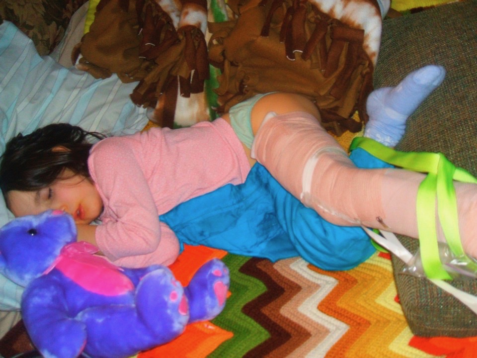 Talia napping at the River House. She broke her leg during our family’s Mid-Winter Break from school across President’s Day Week. A young boy lost control of his sled on Lake Wenatchee’s Sled Hill. He careened across the slope and crashed into Talia. Her leg was broken in several places. They were clean breaks. The injury was vastly complicated, however, by Talia having an uncommon bleeding disorder. So we rushed her to the ER in the small hospital downriver in Leavenworth. Took a while to drive there on curvy, steep roads in winter conditions. Talia’s a tough kid, tho. Didn’t complain much at all. The boy and his family seemed oblivious and in denial over the incident. Embarrassment is one thing, however, but they didn’t show any empathy. We didn’t have time for that kind of … behavior. For us was another blow during the Great Recession as Kristina, Gwen, & I struggled to shield our children from the worst of our “Hard Times” period. We had little time left in both of our homes. February 2008.