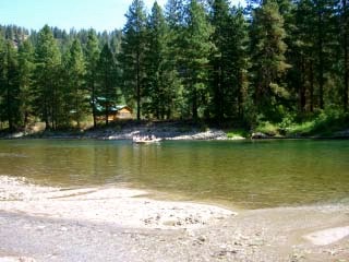 Whitewater river rafters afloat directly across from our new River House home. Back in the forest on the other side there was the village community of Ponderosa.