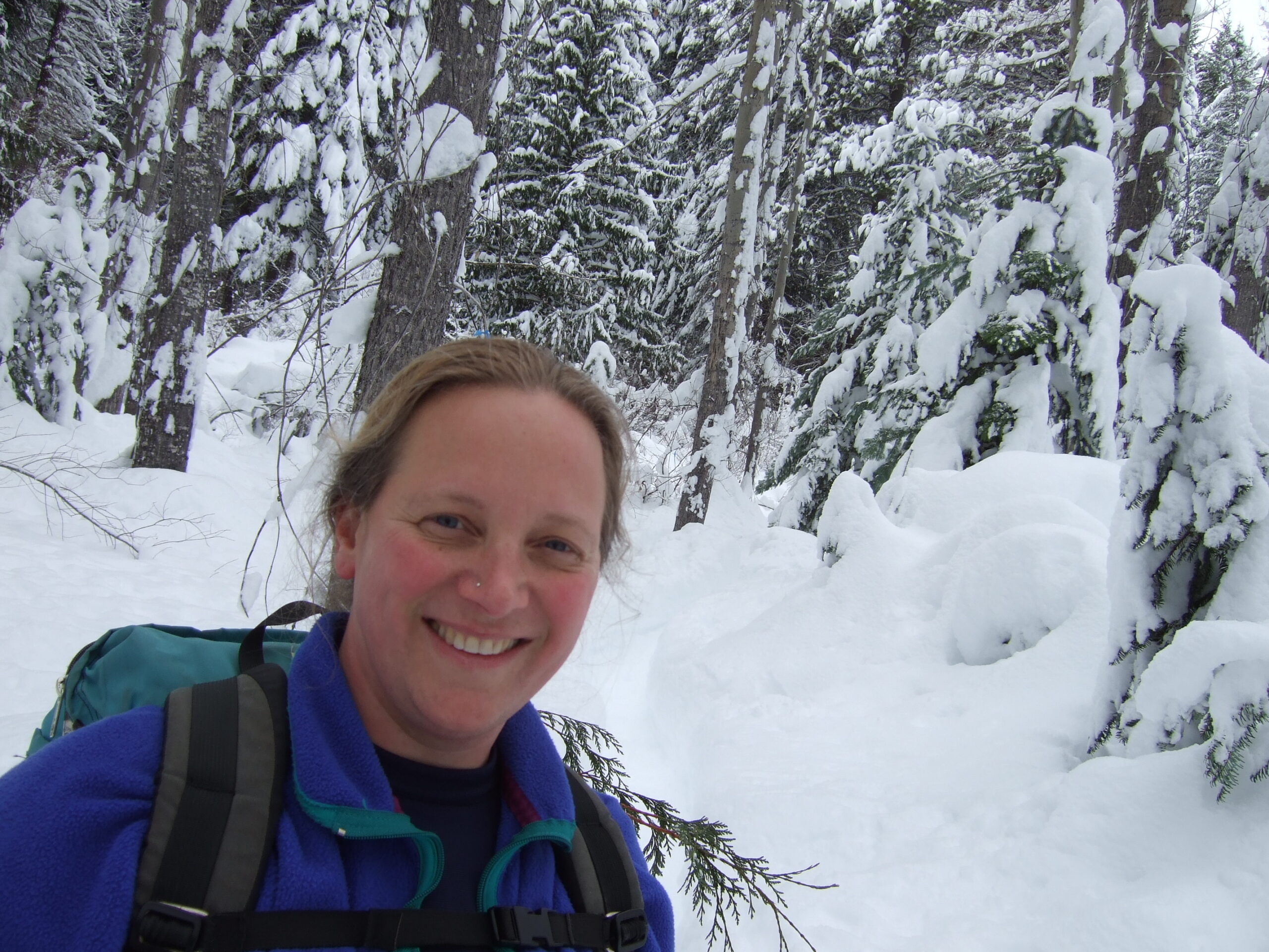 Gwen Hughes, my 2nd ex-wife, out to the River House with the kids in late December 2007. Here she’s snowshoeing in Lake Wenatchee State Park with her partner & eventual 2nd husband, Carol.